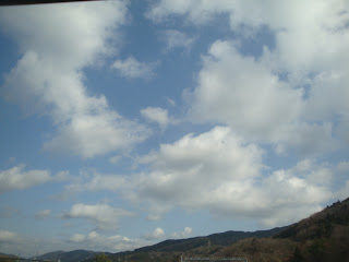 昼ごろになると、積雲がひろがる。北西の風が強く吹く。(13:22)