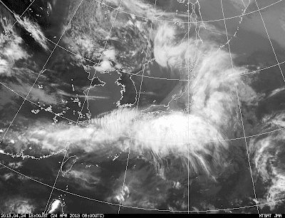 層雲や乱層雲がひろがり、昼過ぎからまとまった雨に。夜遅くにかけ、降り続く。また、南の風がやや強く吹く。(15:26)